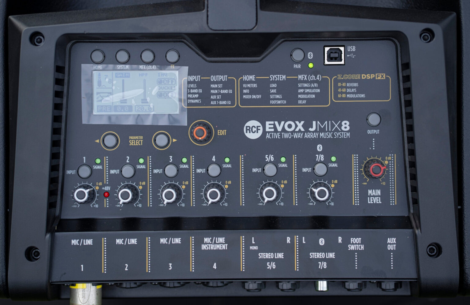 EVOX JMIX8 ก้าวไปอีกขั้นของ RCF โดยเพิ่มเอา Digital Mixer จำนวน 8 อินพุต อินพุตเครื่องดนตรี Hi-Z และการประมวลผลออนบอร์ด Z.CORE DSP ไว้ภายในตู้ ซึ่งไม่เพียงแต่มอบฟังก์ชันการมิกซ์เสียงเต็มรูปแบบเท่านั้น ยังมีการจำลอง FX และ AMP ของเครื่องดนตรีคุณภาพสูงไว้ในตัวอีกด้วย