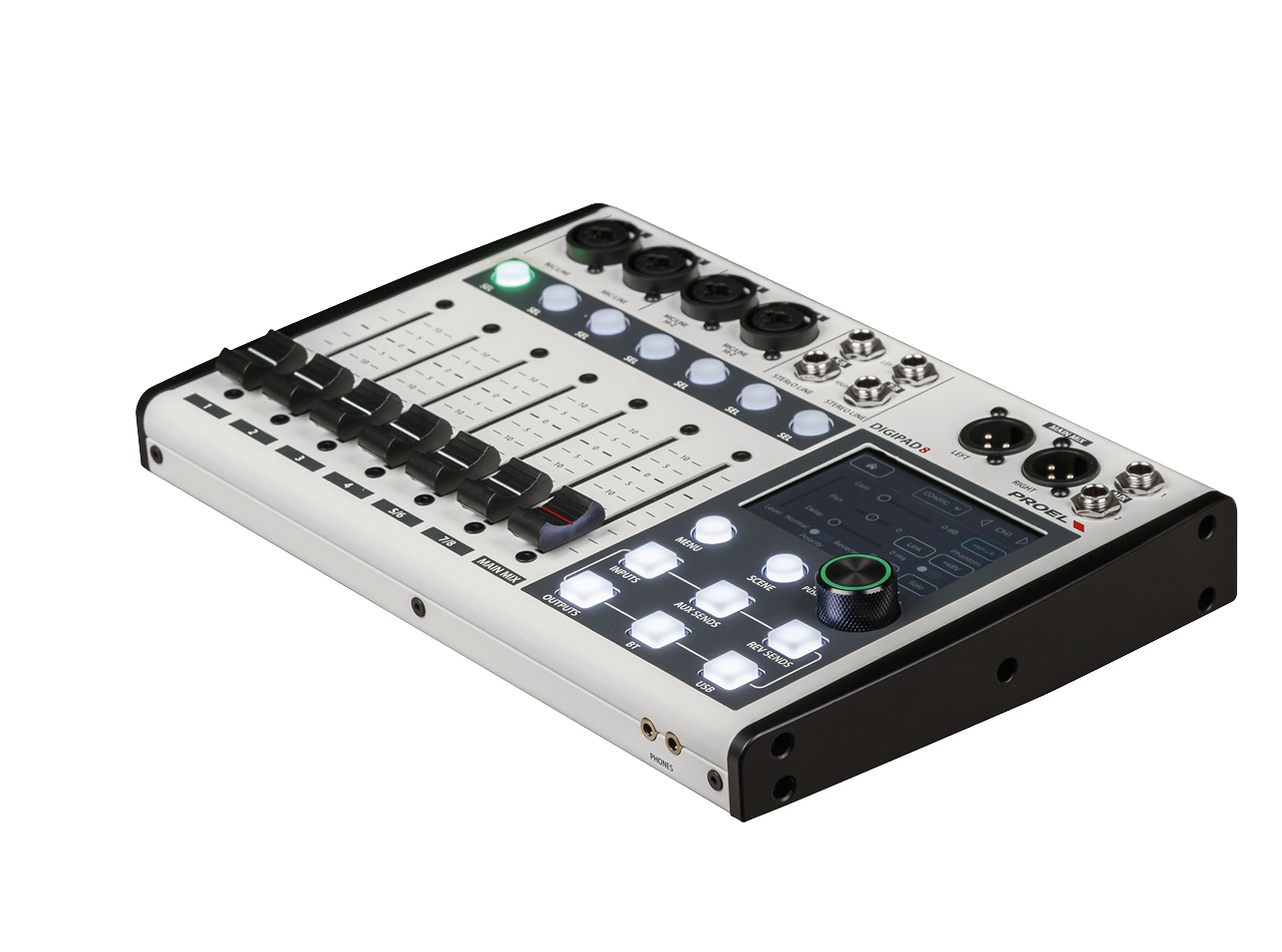 DIGIPAD8 มาพร้อม 7 motorized faders ที่ตอบสนองรวดเร็วและแม่นยำ ช่วยให้คุณเรียกใช้ Scene ที่บันทึกไว้ได้ทันที และเปลี่ยนค่าการมิกซ์ได้อย่างลื่นไหล หน้าจอ Touchscreen ขนาดใหญ่ช่วยให้เข้าถึงทุกพารามิเตอร์ได้อย่างตรงไปตรงมา สร้าง Workflow ที่เข้าใจง่ายและปรับตามสไตล์การทำงานของคุณ